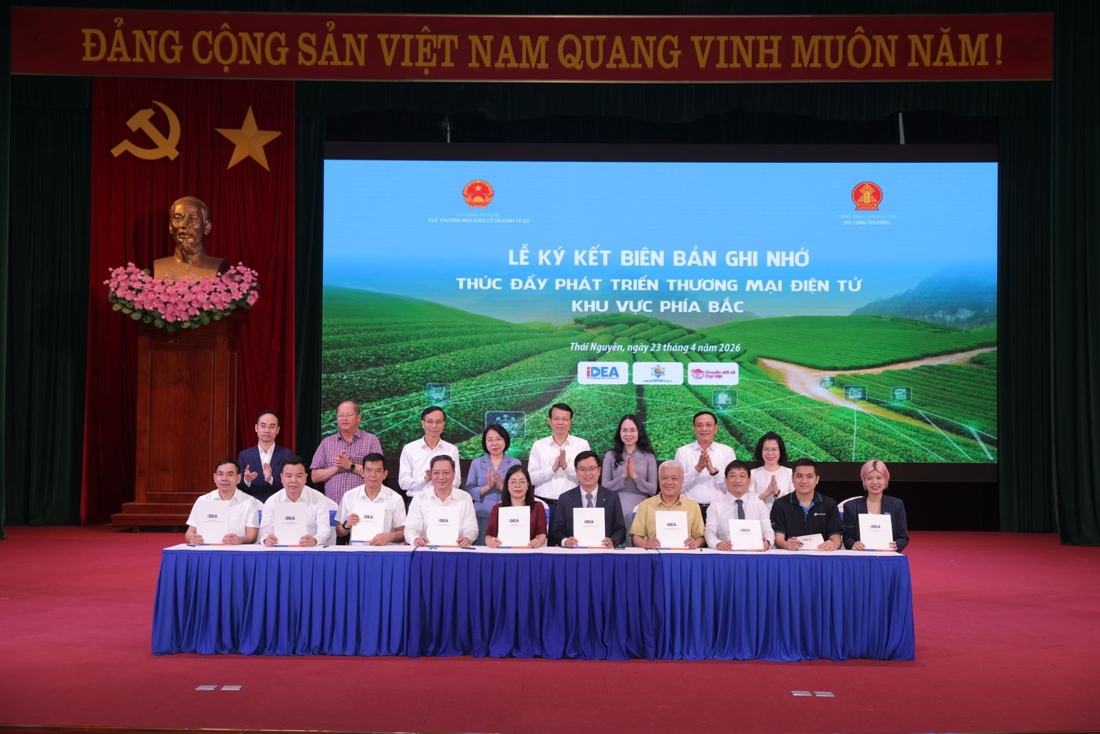 Lễ ký kết biên bản ghi nhớ thúc đẩy phát triển thương mại điện tử giữa các Sở Công Thương khu vực phía Bắc với doanh nghiệp thương mại điện tử, hiệp hội và các trường đại học trên địa bàn tỉnh.