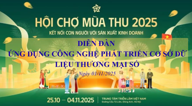 Sắp diễn ra Diễn đàn ứng dụng công nghệ phát triển cơ sở dữ liệu thương mại số30/10/2025Trong khuôn khổ Hội chợ Mùa Thu lần thứ nhất - năm 2025 (diễn ra từ 25⁄10 đến 4⁄11 tại Trung tâm Hội chợ Triển lãm Quốc gia), sáng ngày 01⁄11⁄2025, Cục Thương mại điện tử và Kinh tế số (Bộ Công Thương) sẽ tổ chức Diễn đàn Ứng dụng Công nghệ Phát triển Cơ sở Dữ liệu Thương mại số với chủ đề “AI e-Commerce – Kiến tạo thế hệ tăng trưởng mới”. -