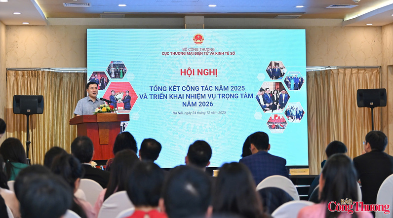 Cục Thương mại điện tử và Kinh tế số: Dấu ấn bứt phá trong năm 202524/12/2025Sáng 24 tháng 12, tại Hà Nội, Cục Thương mại điện tử và Kinh tế số (Bộ Công Thương) tổ chức Hội nghị Tổng kết công tác năm 2025 và triển khai nhiệm vụ trọng tâm năm 2026. -